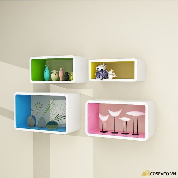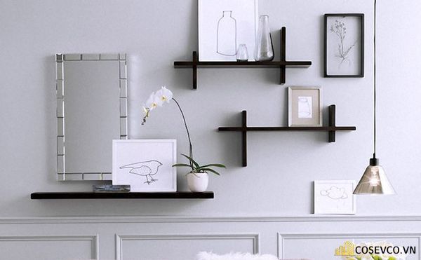 Mô tả: Kệ treo tường không chỉ là nơi để trưng bày đồ vật mà còn là một phần của trang trí tường. Chúng có thể được sử dụng để trưng bày sách, cây cảnh, đồ lưu niệm, hoặc các vật dụng cá nhân khác.